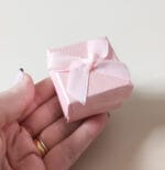 Caixinha cartonada com tampa, laço e berço para joia.