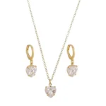 Colar e brincos com pingente de coração de cristal.